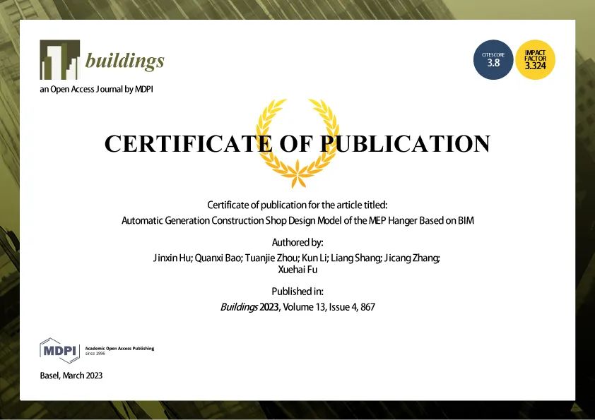 華固三維自動化支吊架設(shè)計軟件研發(fā)成果登陸國際建筑期刊Buildings